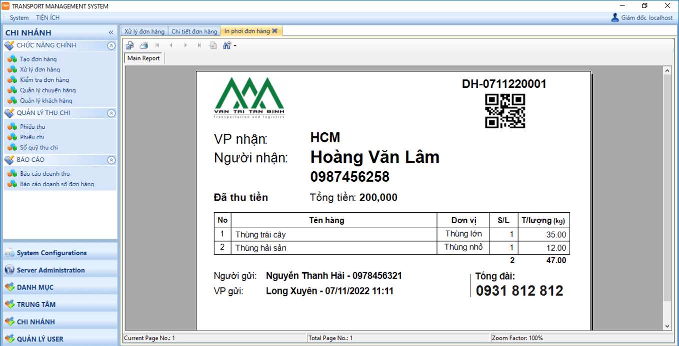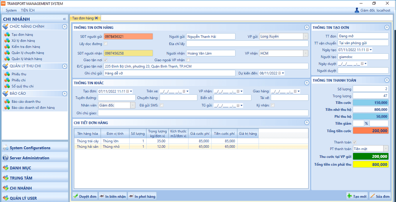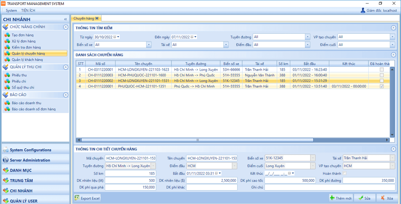 🏢 Quản lý nhiều chi nhánh & hình thức vận tải