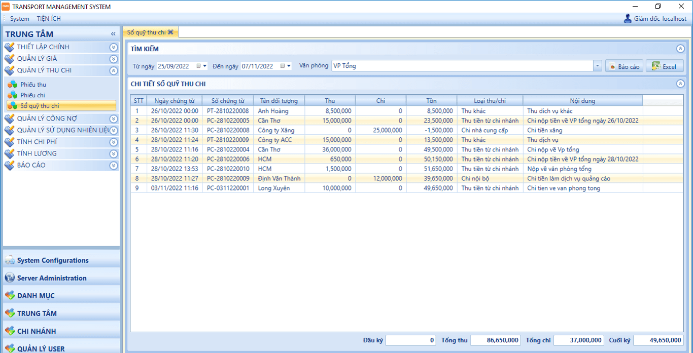 - Quản lý chi phí, doanh thu, kho vận, đối tác và khách hàng.