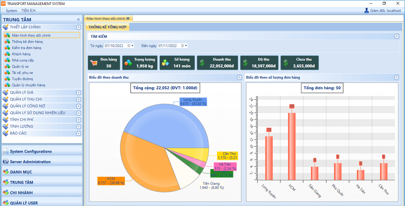 - Tính toán doanh thu theo từng đơn hàng, tuyến đường, loại dịch vụ.