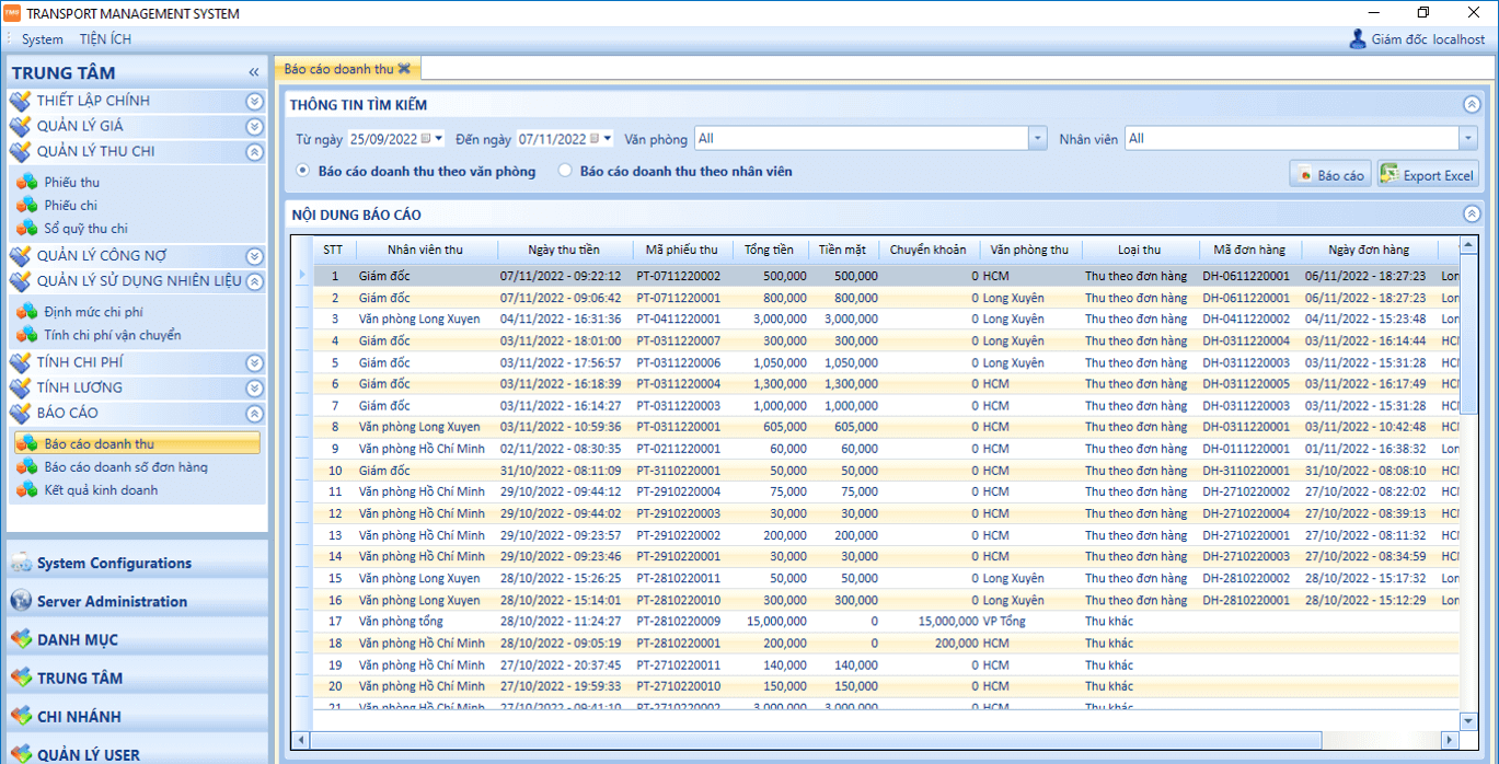 - Báo cáo chi tiết theo thời gian, khu vực, tuyến đường.